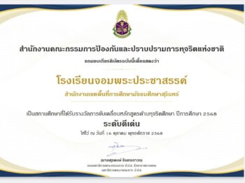 📣ขอแสดงความยินดีกับโรงเรียนจอมพระประชาสรรค์ ได้รับรางวัล การขับเคลื่อนหลักสูตรทุจริตศึกษา ระดับดีเด่น 🏆 ประจำปี 2568 จากสำนักงานคณะกรรมการป้องกันและปราบปรามการทุจริตแห่งชาติ 16 มี.ค. 202618 มี.ค. 2026adminรางวัล